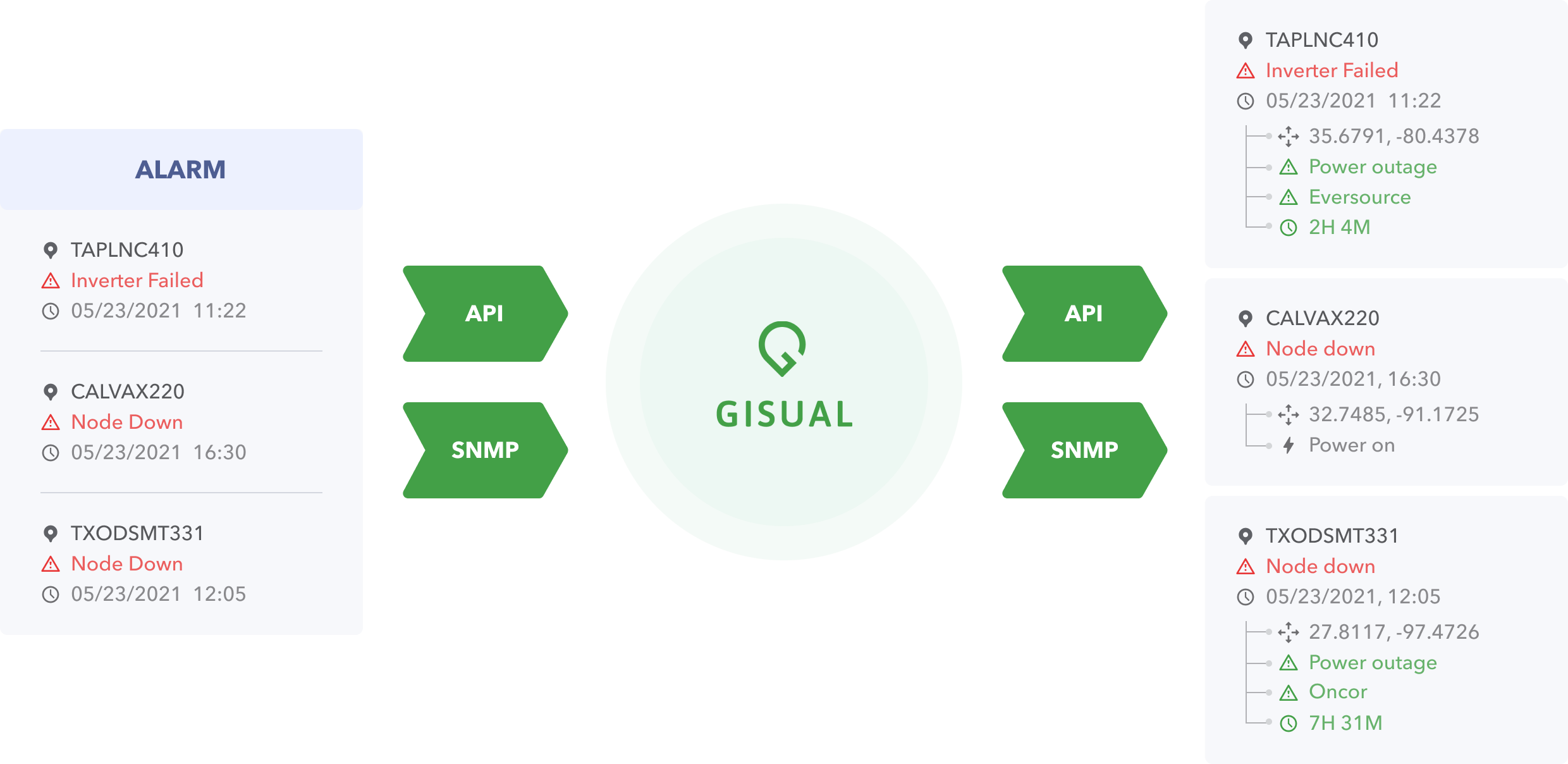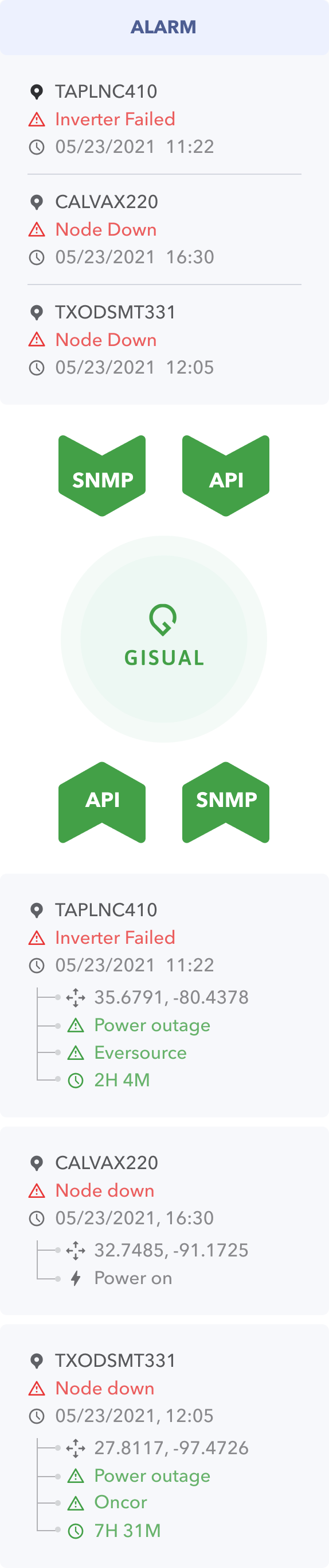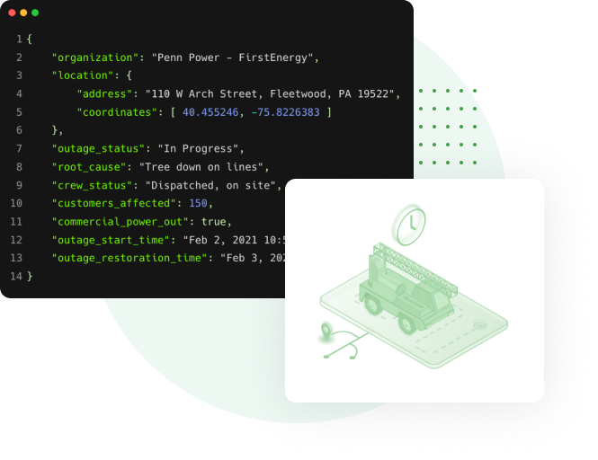 Your operations center has better things to do than calling utility companies. Gisual’s API pipes real-time power status into the tools you already use. Automatically triage power outage issues and stop unnecessary dispatches.